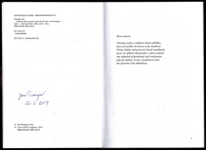 Cesta do ráje na zemi, aneb, Čertův dar - PODPIS JAN PERINGER