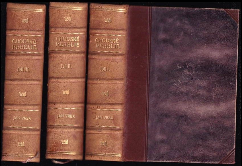 Chodské rebelie, historický román o třech dílech 1928 II. díl (538 s., 3. vyd.)Chodské rebelie, historický román o 3 dílech 1928 1. díl (510 s., 3. vyd.)