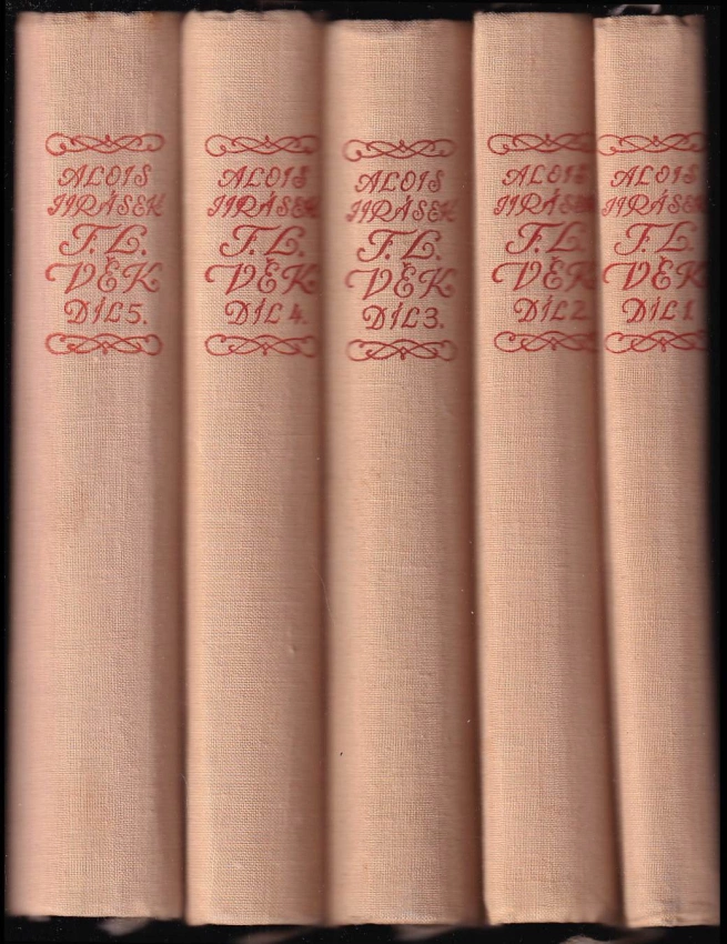 F.L. Věk, obraz z dob našeho národního probuzen... 1953 Díl první (285 s., [16] barev. obr. příl, 1. vyd.)F.L. Věk, obraz z dob našeho národního probuzen... 1953 Díl druhý (412 s., [17] barev. obr. příl, 1. vyd.)