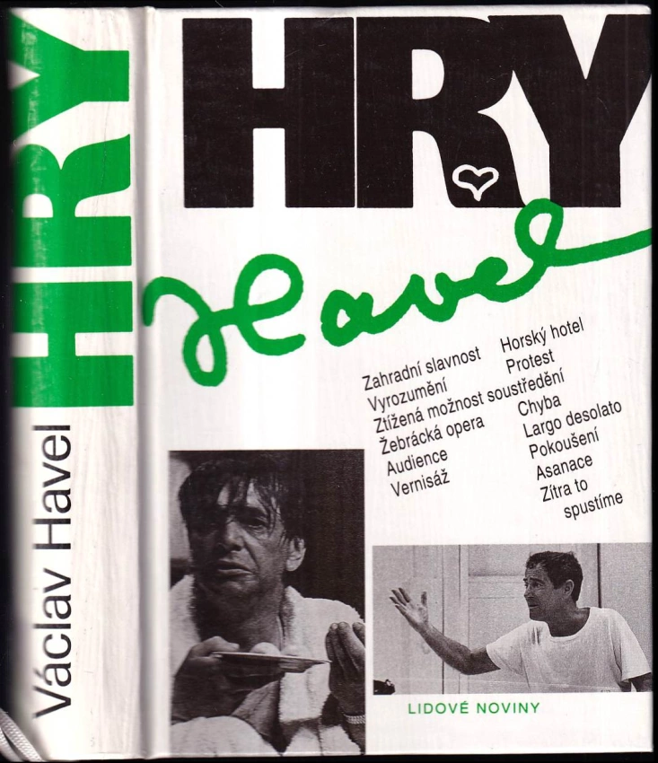Hry - Zahradní slavnost, Vyrozumění, Ztížená možnost soustředění, Žebrácká opera, Audience, Vernisáž, Horský hotel, Protest, Chyba, Largo desolato, Pokoušení, Asanace, Zítra to spustíme PODPIS VÁCLAV HAVEL