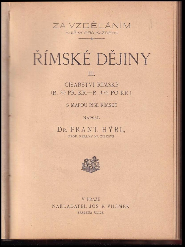 Římské dějiny, Císařství římské (r. 30. př. Kr.-r. 4... 1916 III (42 , 1 nečíslovaný list obrazové přílohy, 1. vyd.)
