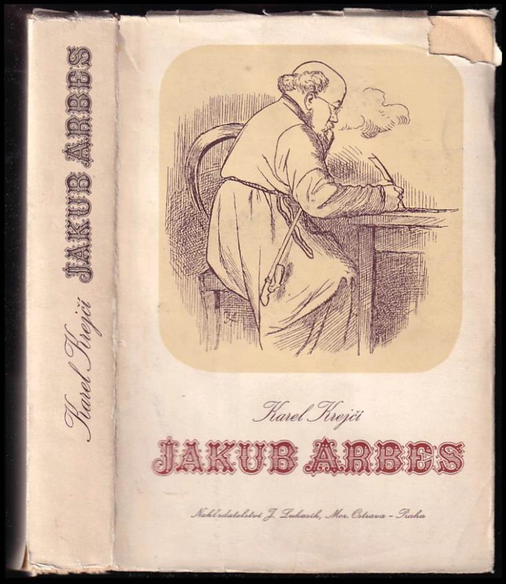 prasklá zadní strana obalky, archy stále nerozřezané, potrhané poslední stránky, lehce opotřebená obálka