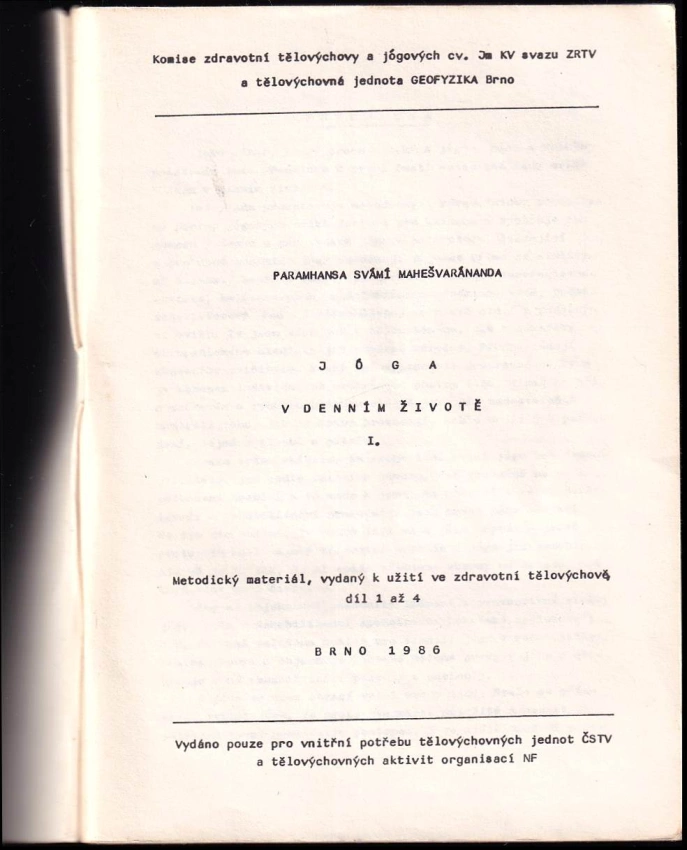 Jóga v denním životě, metodický materiál 1986 1 (100 s.)Jóga v denním životě, metodický materiál, vydaný k užití ve... 1987 II (181 s.)