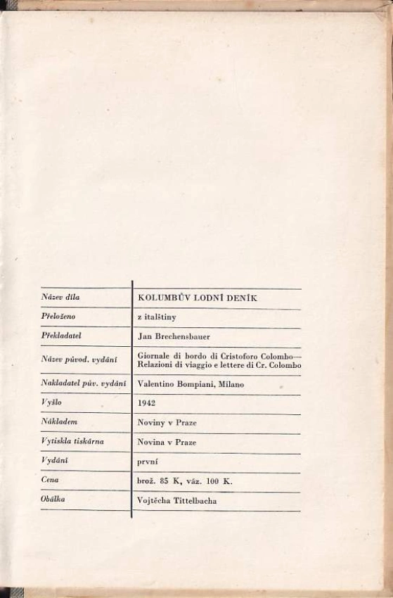 : dvě knihy velkých činů a velkého osudu : rekonstrukce a citace lodního deníku Kryštofa Kolumba z první oceánské plavby (1492-1493) a zprávy a listy Kolumba a jeho současníků o dalších třech cestách 1493-1496, 1498-1500 a 1502-1504 a o smutném konci objevitele, sebrané a vydané péčí Rinalda Caddea