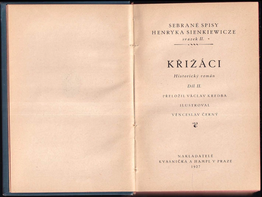 Křižáci, historický román 1927 Díl I (518 s.)Křižáci, historický román 1927 Díl II (589 , 33 listů černobílých obrazových příloh)