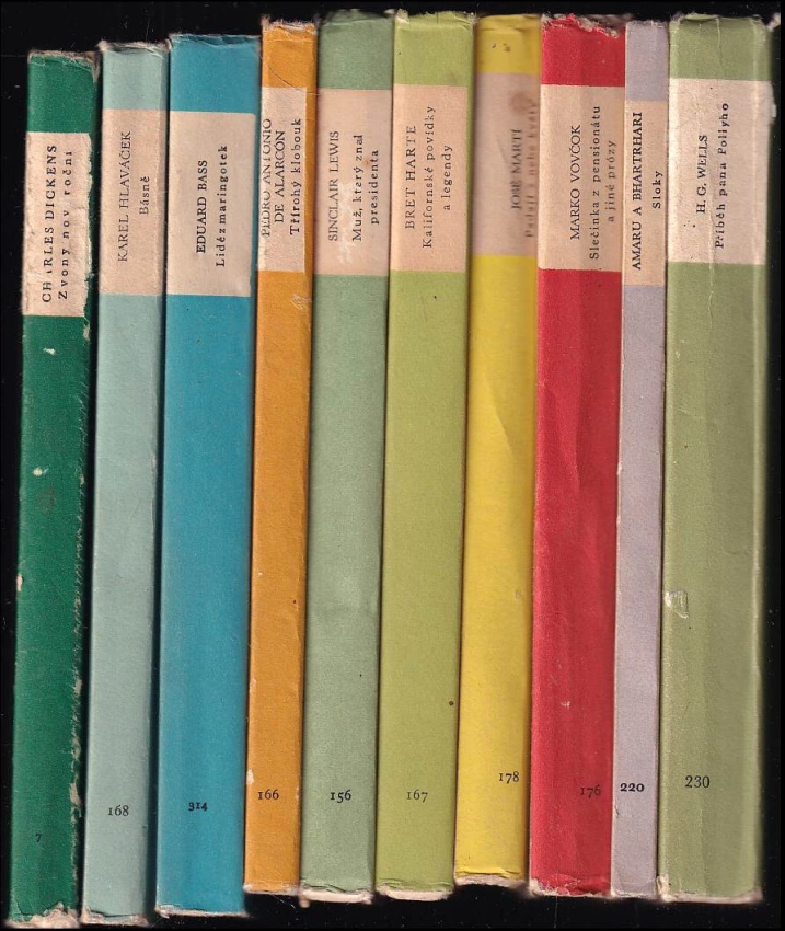 10X EDICE SVĚTOVÁ ČETBA - Příběh pana Pollyho + Sloky o lásce, moudrosti a odříkání + Slečinka z pensionátu a jiné prózy + Padají z nebe květy + Kalifornské povídky a legendy + Muž, který znal presidenta + Třírohý klobouk + Lidé z maringotek + Básně + Zvony novoroční