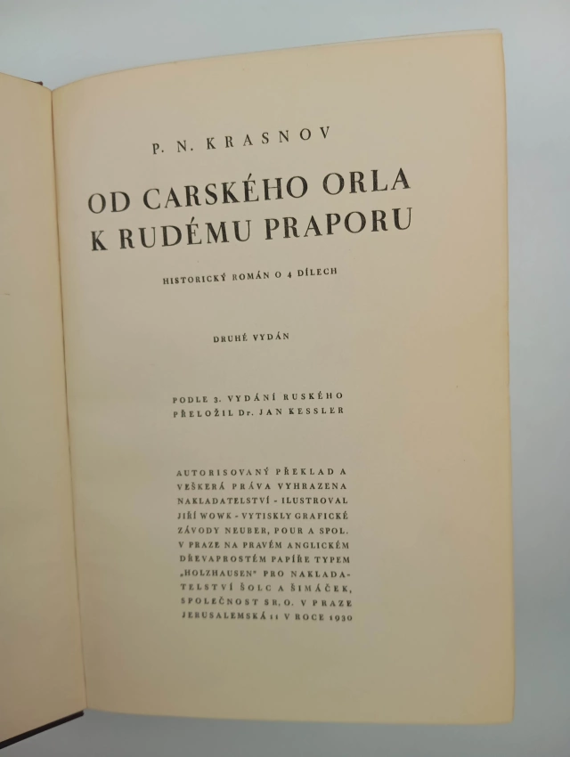 Od carského orla k rudému praporu 1930 II. (533 s., 2. vyd.)Od carského orla k rudému praporu, historický román o 4 dílech 1930 Díl I (594 s., [I] obr. příl, 2. vyd.)