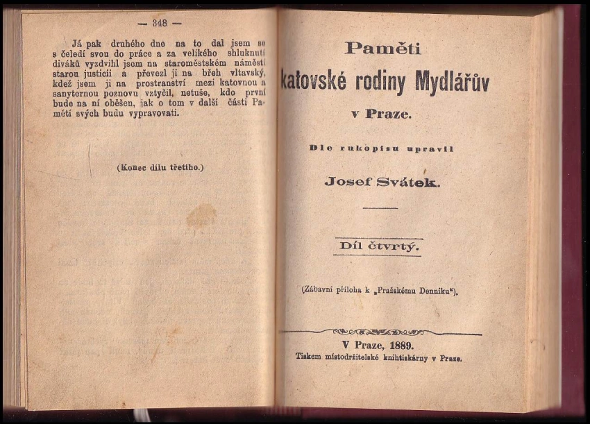 Paměti katovské rodiny Mydlářův v Praze 1889 Díl čtvrtý (184 s.)