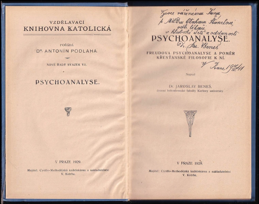 Psychoanalyse PODPIS / DEDIKACE JAROSLAV BENEŠ