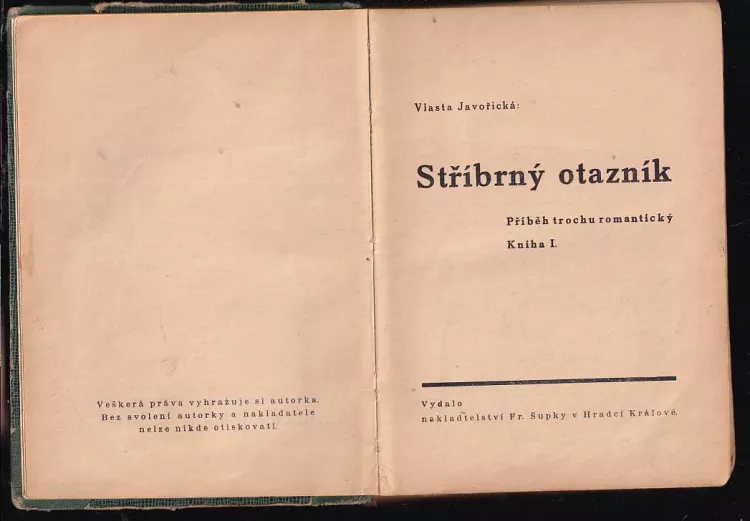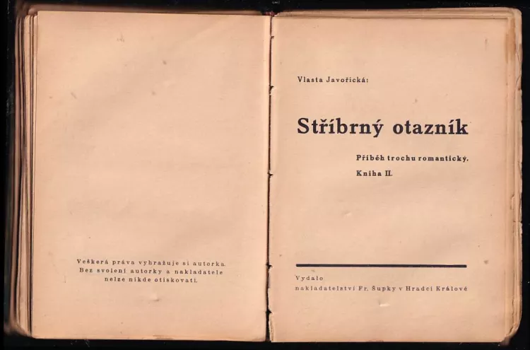 Stříbrný otazník, příběh trochu romantický 1937 Kniha I (269 - [I])Stříbrný otazník, Příběh trochu romantický 1937 Kniha II (224 s.)