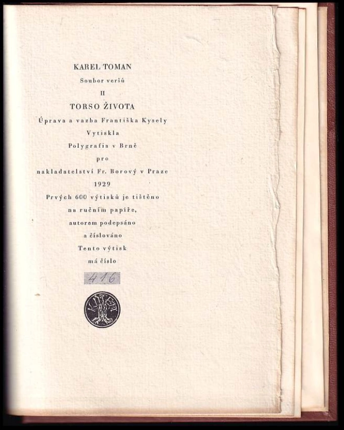 Torso života PODPIS KAREL TOMAN, ČÍSLOVANÝ VÝTISK 416/600