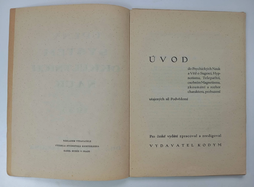 Hypnotismus, Telepathie, Osobní Magnetismus a Ovládání li... 1933 (123 - [I])Úvod do Psychických Věd a nauk o Sugesci, Hypnotismu, Tel... 1933 Kniha I (75 s.)