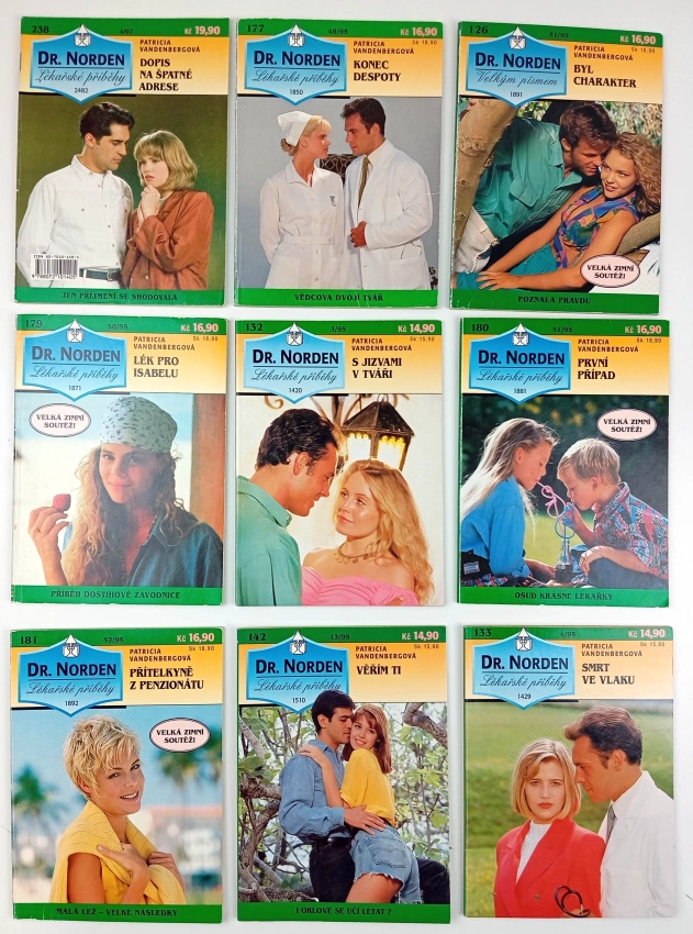 9X DR. NORDEN - LÉKAŘSKÉ PŘÍBĚHY - Patricia Vandenberg : Smrt ve vlaku + Přítelkyně z penzionátu + Věřím ti + První případ + S jizvami v tváři + Lék pro Isabelu + Byl charakter + Konec despoty + Dopis na špatné adrese