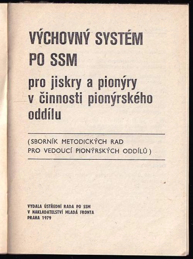 Výchovný systém PO [Pionýrská organizace] SSM pro jiskry a pionýry v činnosti pionýrského oddílu : sborník metodických rad pro vedoucí pionýrských oddílů
