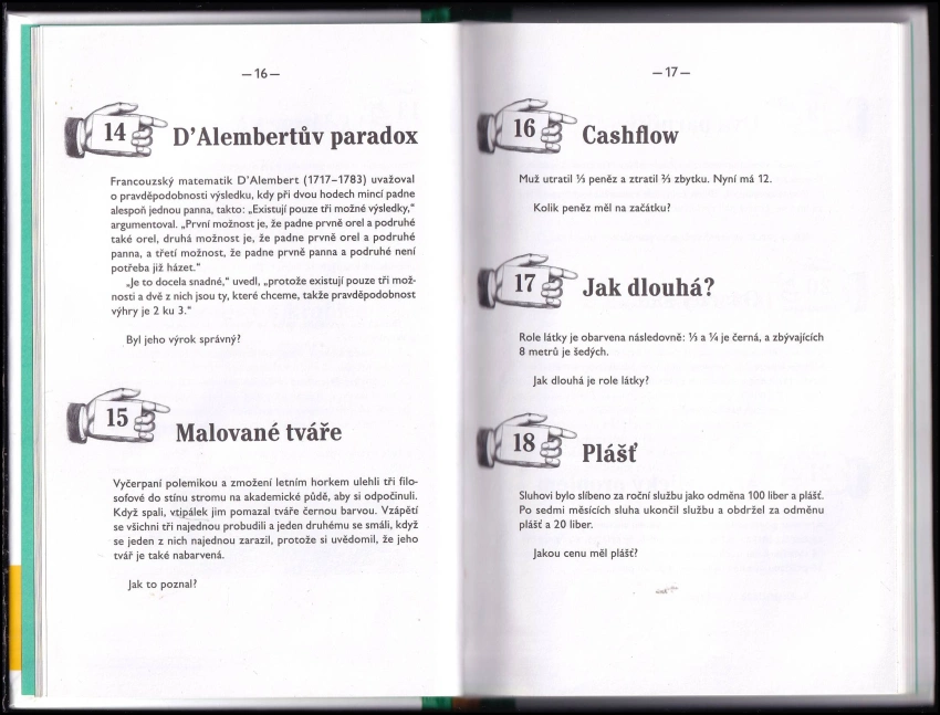 : matematické problémy, záhady pro laterální myšlení, hádanky, rébusy a další