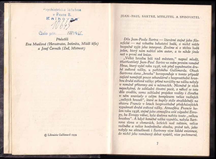 Jean-Paul Sartre IPA byl francouzský filozof, spisovatel, dramatik, literární kritik a politický aktivista. Jako jeden z hlavních představitelů existencialismu a marxismu ve francouzské filosofii 20. století patří mezi nejvýznamnější postavy poválečné kultury v Evropě. Sartre svým dílem ovlivnil nejen filozofii, ale také sociologii, literární kritiku či postkoloniální studia. Často bývá také zmiňován pro nekonvenční, nicméně celoživotní vztah se spisovatelkou a feministickou teoretičkou Simone de Beauvoir. V roce 1964 mu byla udělena Nobelova cena za literaturu. On ji však odmítl s odůvodněním, že nikdy nepřijal žádné oficiální vyznamenání, a věří, že spisovatel nesmí dopustit, aby se z něj stala instituce. Jean-Paul Sartre se narodil v Paříži, kde vyrůstal v měšťanském prostředí intelektuálů. Otec zemřel, když byly Jean-Paulovi dva roky. Vyrůstal pak v domě svého dědečka z matčiny strany, Carla Schweitzera, profesora němčiny na Sorbonně a strýce známého misionáře a lékaře Alberta Schweitzera. Již v útlém dětství se ponořil do literatury, která se pro něj jako malého chlapce s šilhavýma očima stala útěchou před nepřátelským světem. Navštěvoval lyceum Jindřicha IV., kde se seznámil s Paulem Nizanem, a později lyceum v La Rochelle. V letech 1922–1924 byl v přípravné třídě na lyceu Louis-le-Grand. Později byl přijat na prestižní École normale supérieure, kde se seznámil s Raymondem Aronem. Roku 1929 také poznal Simone de Beauvoir, s níž ho do konce života pojil otevřeně volný, ale trvalý partnerský vztah. V tomto období poznal i mnohé další budoucí významné autory, mezi něž patřili například Maurice Merleau-Ponty, Simone Weil, Emmanuel Mounier či Claude Lévi-Strauss. Studium ukončil roku 1929 jako nejlepší z celé filosofické třídy a poté pracoval jako učitel na lyceích v Le Havre, Laonu a Paříži. V letech 1933–1934 absolvoval pobyt na Francouzském institutu v Berlíně, kde s...