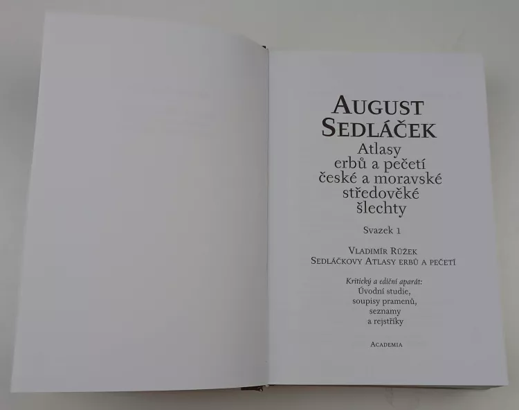 Atlasy erbů a pečetí české a moravské středověké šlechty..., Sedláčkovy Atlasy erbů a pečetí 2001 Svazek 1 (638 s., 1. vyd.)Atlasy erbů a pečetí české a moravské středověké šlechty..., Atlas erbů: Čechy (2. část), Edice 2002 Svazek 3 (510 s., 1. vyd.)
