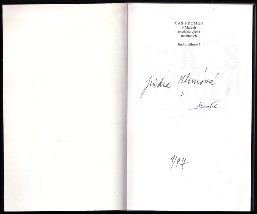 Čas proměn v Malých (rozhlasových) meditacích - PODPIS JINDRA KLÍMOVÁ
