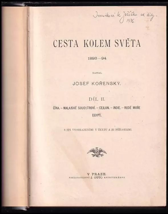 Cesta kolem světa, Atlantický Ocean. - Amerika. - Tichý ... 1899 I./1. část (351 s.)Cesta kolem světa 1893-94, Čína. Malajské souostroví. Cejlon. In... 1899 Díl II (iii, 665 , 84 nečíslovaných obrazových příloh)