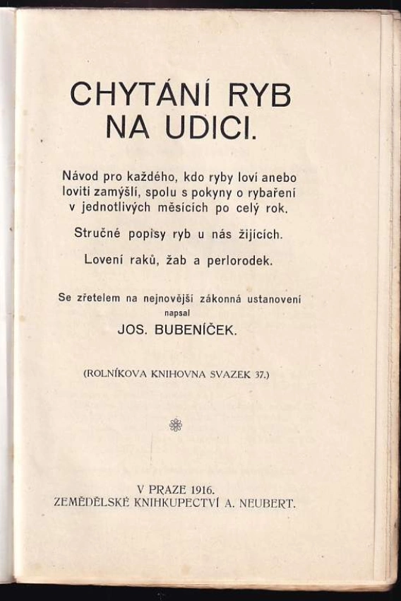 : návod pro každého, kdo ryby loví anebo loviti zamýšlí, spolu s pokyny o rybaření v jednotlivých měsících po celý rok : stručné popisy ryb u nás žijících, lovení raků, žab a perlorodek