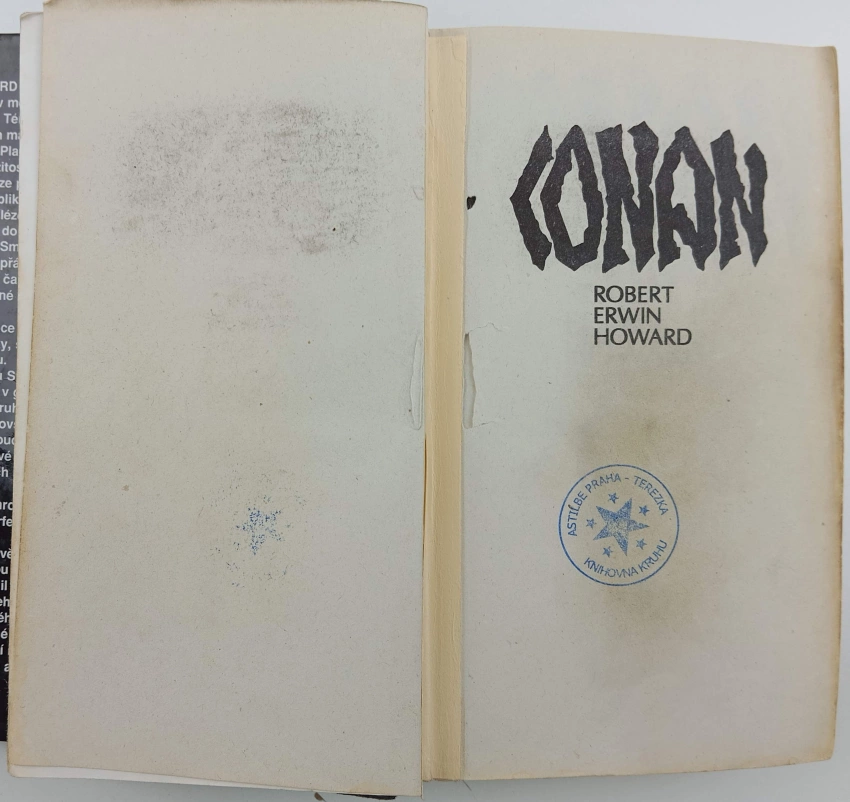 natrhnutý hřbet, vazba lehce prasklá, zkosený hřbet, razítka a polepky z knihovny, špinavá ořízka