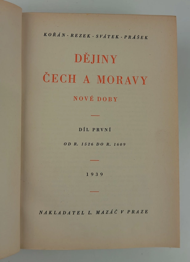 Dějiny Čech a Moravy nové doby, Od r. 1526 do r. 1609 1939 Díl první (815 s., 1. vyd.)Dějiny Čech a Moravy nové doby, Od r. 1610 do r. 1621 1940 Díl druhý (788 s., [15] l. obr. příl, 1. vyd.)