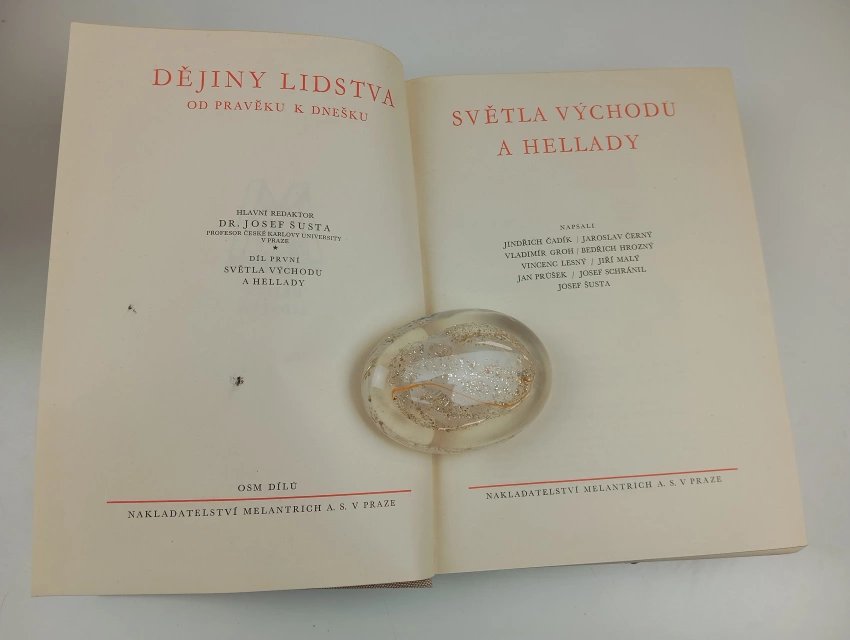 Dějiny lidstva od pravěku k dnešku, Světla východu a Hellady 1940 Díl první (xlvi, 701, 1. vyd.)Dějiny lidstva od pravěku k dnešku, Římské imperium jeho vznik a rozklad 1936 Díl druhý (xxxiv, 695, 1. vyd.)