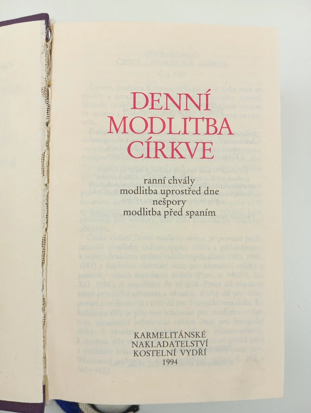 Denní modlitba církve : ranní chvály, modlitba uprostřed dne, nešpory, modlitba před spaním