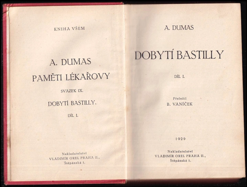Dobytí Bastilly II. svazek, Paměti lékařovy X. 1929 (324 s.)Dobytí Bastilly I. svazek, Paměti lékařovy IX. díl 1929 (360 s.)