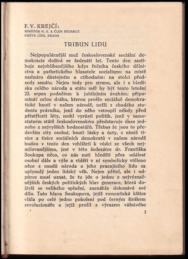 Dr. Frant. Soukup tribun lidu ČÍSLOVANÝ VÝTISK 8/60