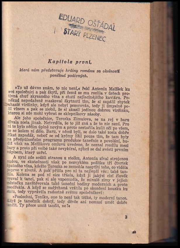 desky s oděrkami, zašlé stránky, stránky s flíčky, natrhnutý titulní list, razítko
