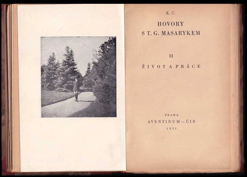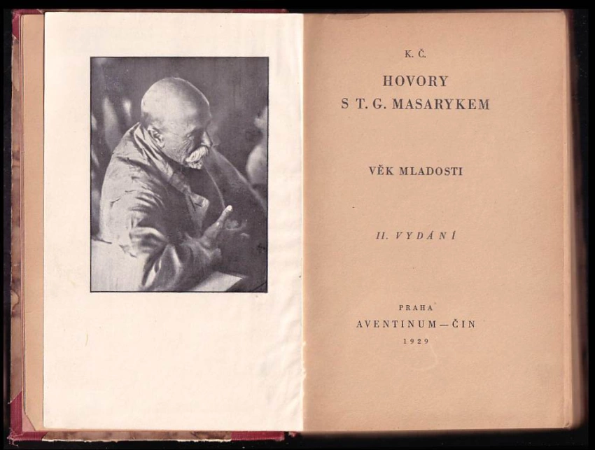 Hovory s T. G. Masarykem, věk mladosti 1929 (118 s., [1] l. obr. příl, 2. vyd.)Hovory s T.G. Masarykem, Život a práce 1931 II. (170, [III], 2. vyd.)