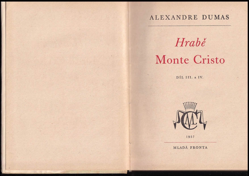 Hrabě Monte Cristo 1957 Díl I. a II (376 s., 1. vyd.)Hrabě Monte Cristo 1957 Díl III. a IV (371 s., 1. vyd.)