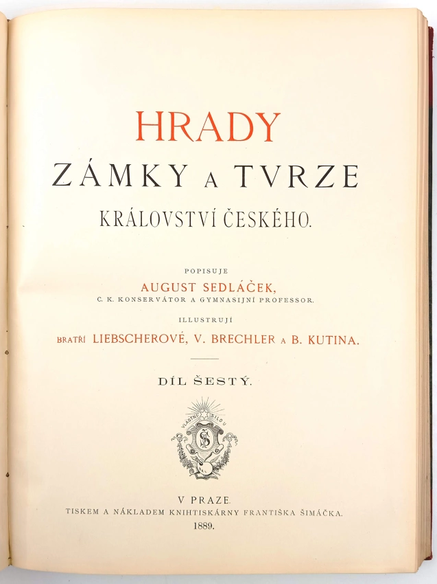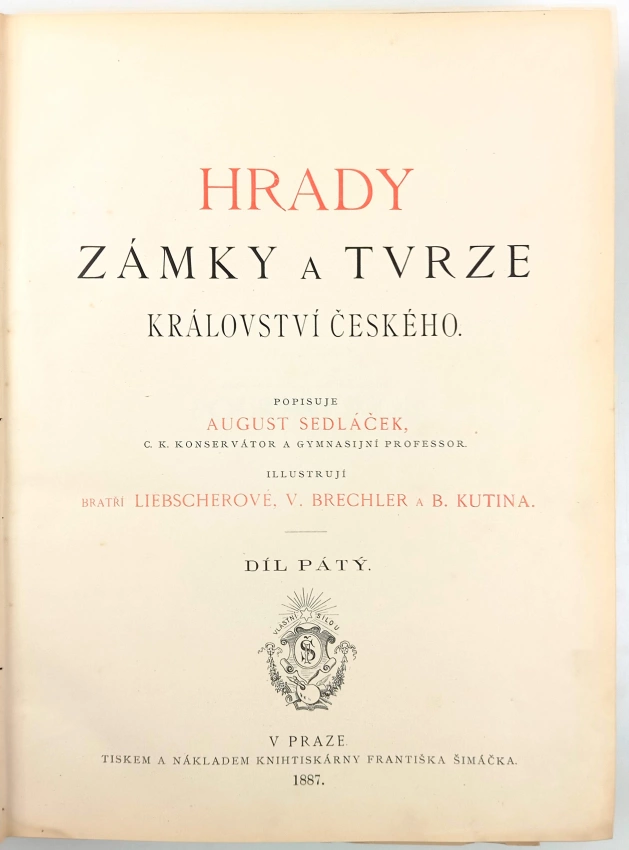 Hrady, zámky a tvrze království Českého, [Podkrkonoší] 1887 Díl pátý (367 s.)Hrady, zámky a tvrze království Českého, [Podbrdsko] 1889 Díl šestý (279 , 31 nečíslovaných obrazových příloh)