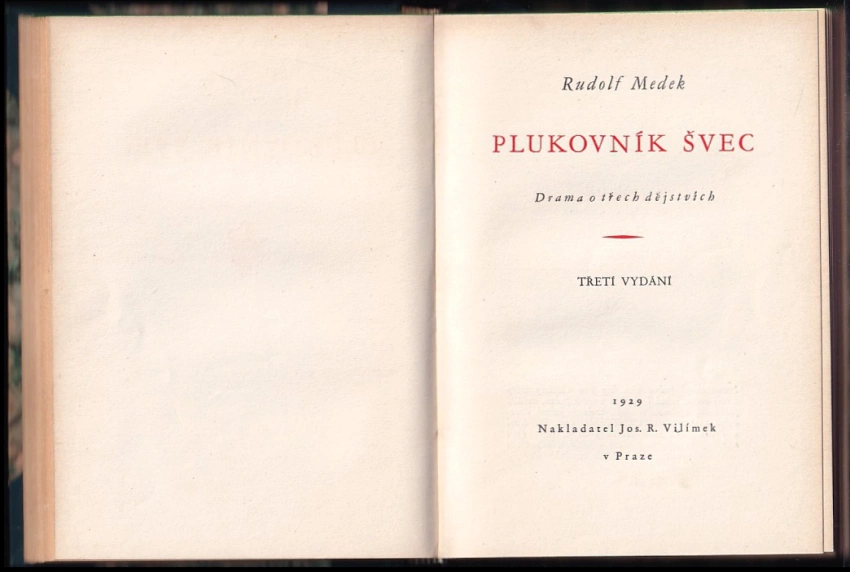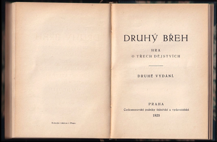 Plukovník Švec, drama o třech dějstvích 1929 (145, [I], 3. vyd.)Druhý břeh, hra o třech dějstvích 1925 (118 s., 2. vyd.)