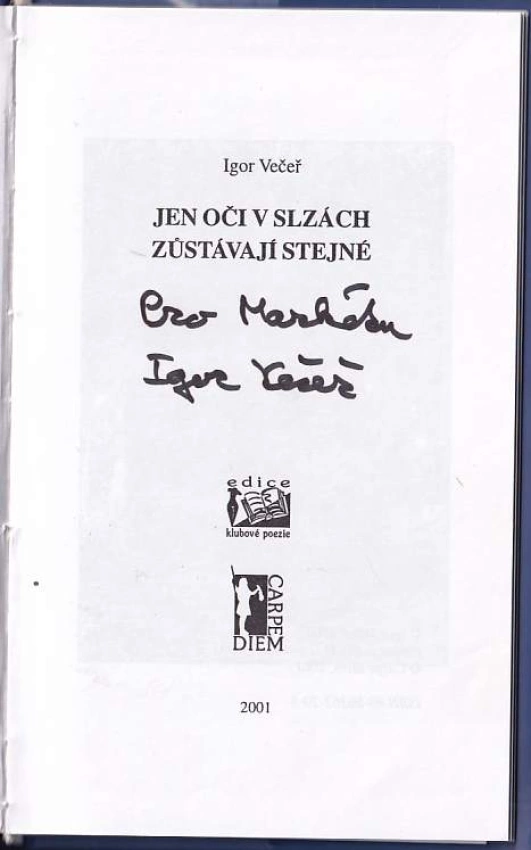 Jen oči v slzách zůstávají stejné PODPIS/AUTORSKÁ DEDIKACE-Igor Večeř