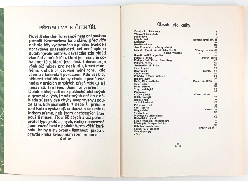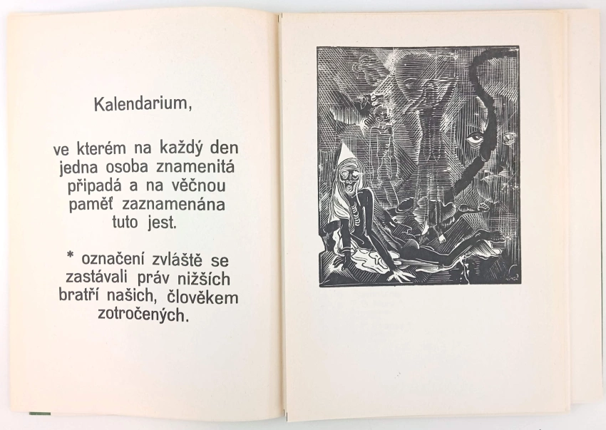 Josefa Váchala, dřevorytce, Nový kalendář tolerancý na rok 1923, aneb Rokodník, ve kterém na každý den nějaký bludař neb jiná pozoruhodná a znamenitá osoba a svátek vynajíti se může