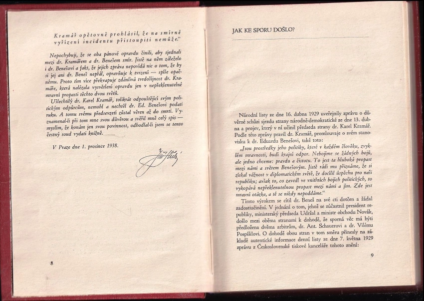 : spor dr. K. Kramáře s ministrem zahraničních věcí dr. Ed. Benešem