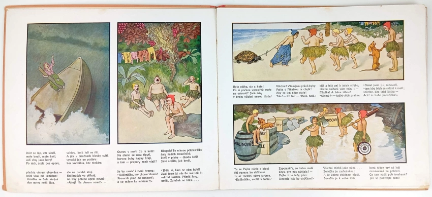 Lehce prohnuté desky, lehce zašlé desky, knižní blok volně, počmáraná zadní část desek