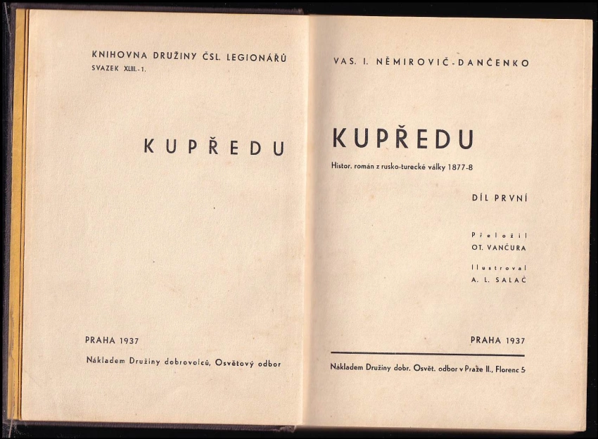 Kupředu, historický román z rusko-turecké válk... 1937 Díl první (308, [I])Kupředu, historický román z rusko-turecké válk... 1937 Díl druhý (232 s.)