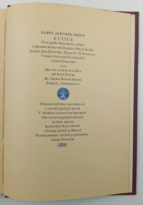 Kytice z pověstí národních ČÍSLOVANÝ VÝTISK 84/ 1 000, PODPIS JAN ZRZAVÝ
