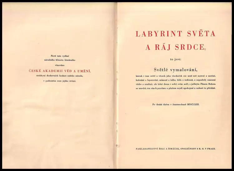 Labyrint světa a ráj srdce - to jest: Světlé vymalování, kterak v tom světě a věcech jeho všechněch nic není než matení a motání, kolotání a lopotování, mámení a šalba, bída a tesknost, a naposledy omrzení všeho a zoufání, alekdoždoma v srdci svém sedě, s