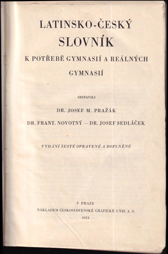 Latinsko-český slovník k potřebě gymnasií a reálných gymnasií1935 | Unie