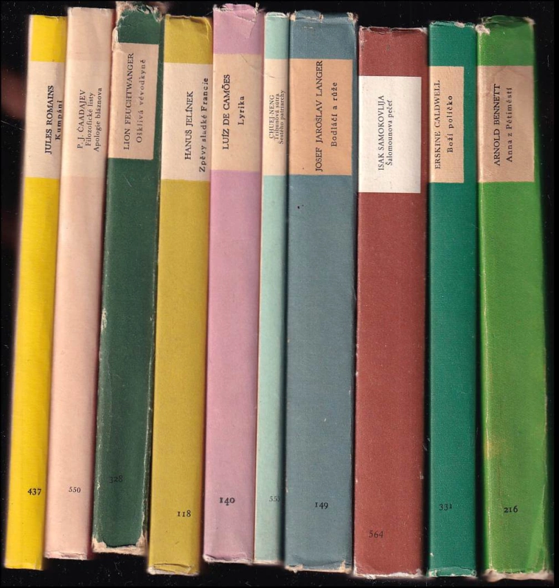 10X EDICE SVĚTOVÁ ČETBA - Anna z Pětiměstí + Boží políčko + Šalomounova pečeť + Bodláčí a růže + Tribunová sútra Šestého patriarchy + Lyrika + Zpěvy sladké Francie + Ošklivá vévodkyně Markéta Pyskatá + Filozofické listy ; Apologie bláznova + Kumpáni