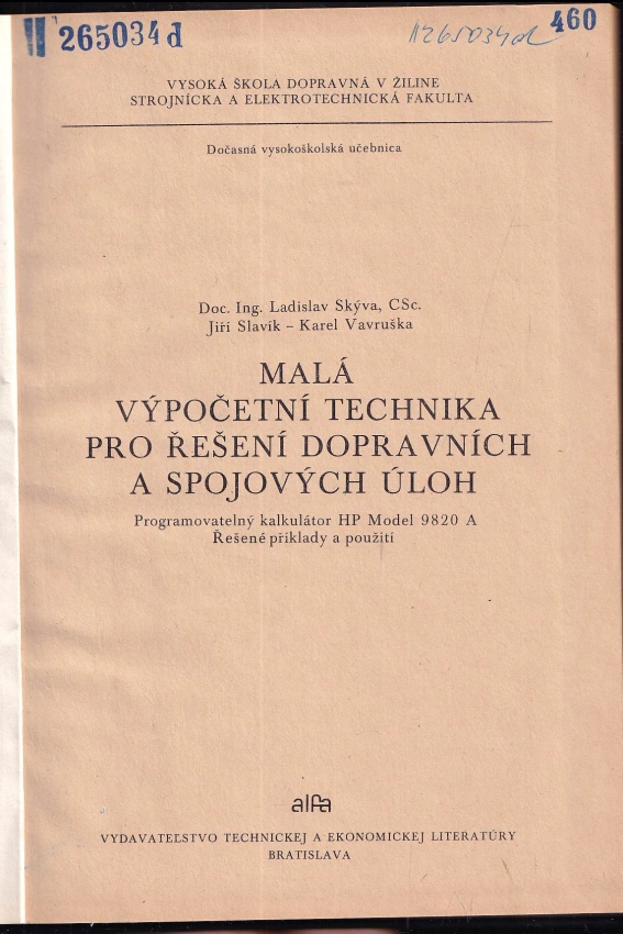 : programovatelný kalkulátor HP Model 9820 A : Řešené příklady a použití
