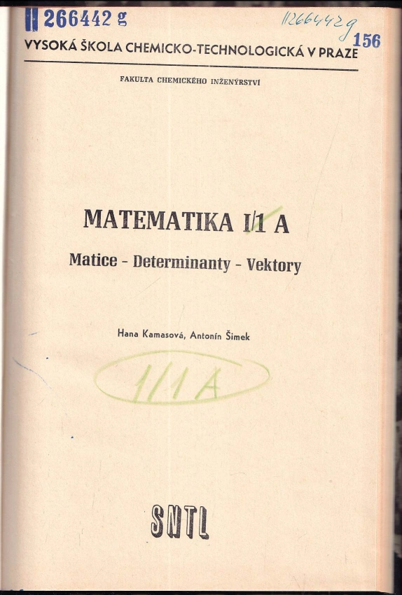 : Určeno pro posl. [1. roč.] fak. chem. inženýrství - [Díl] 1 A