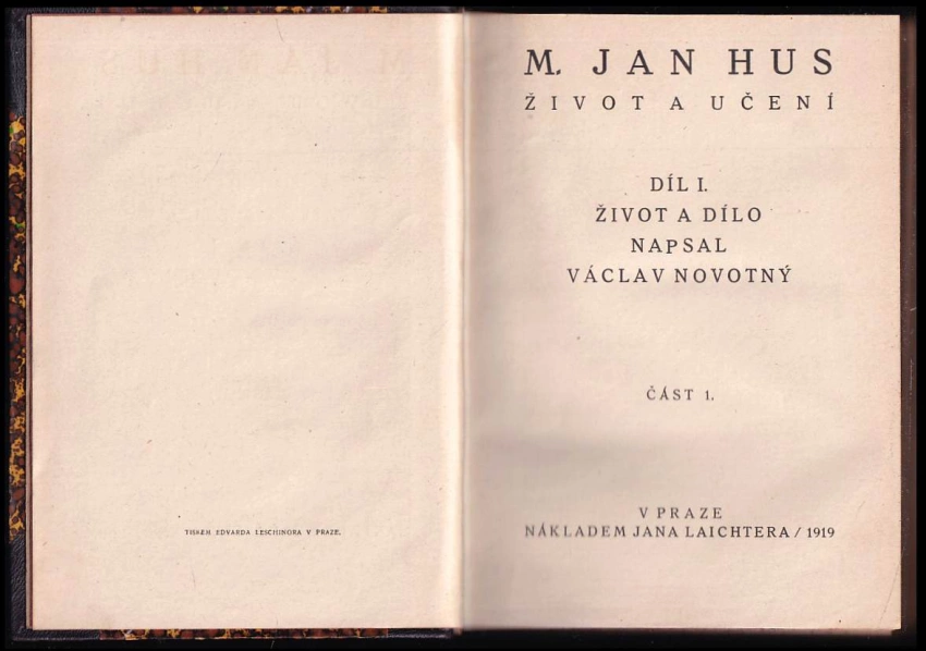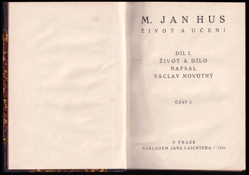 Mistr Jan Hus - Život a učení díl I. - část 2. 1921 díl 1., část 2. (552 s.)Mistr Jan Hus - Život a učení - díl I., část 1. 1919 Díl 1. Část 1 (505 s.)