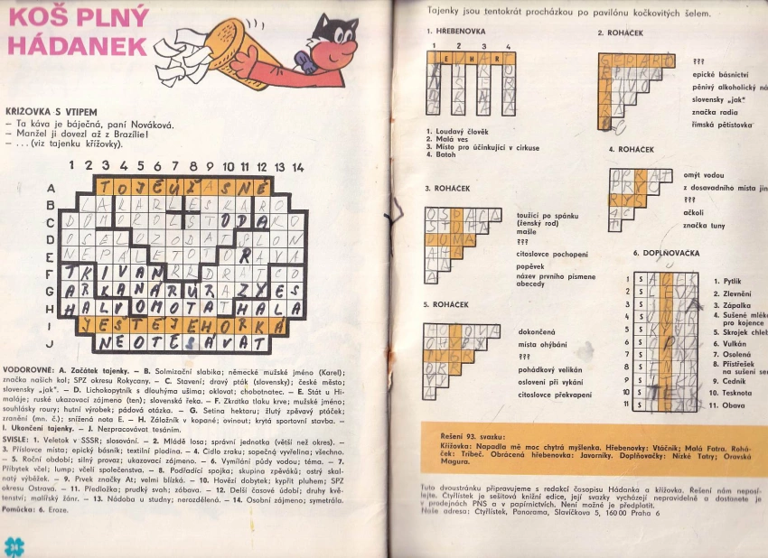 Zrezlé sponky, zachovalý stav, křížovky a doplňovačky vyplněné tužkou a fixou, nafoceno