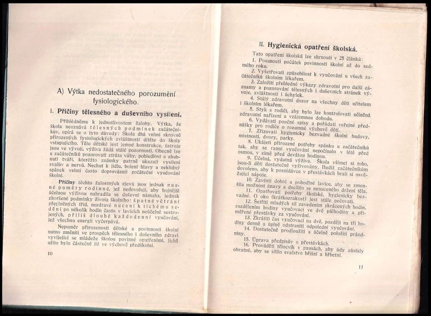 Opravné snahy ve školském zdravotnictví, výchově a prvopočátečním vyučování