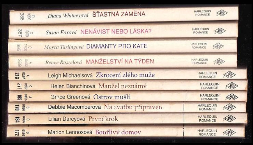 KOMPLET Harlekýnky 10X Šťastná záměna + Nenávist nebo láska? + Diamanty pro Kate + Manželství na týden + Zkrocení zlého muže + Manžel neznámý + Ostrov mušlí + Na svatbu připraven + První krok + Bouřlivý domov